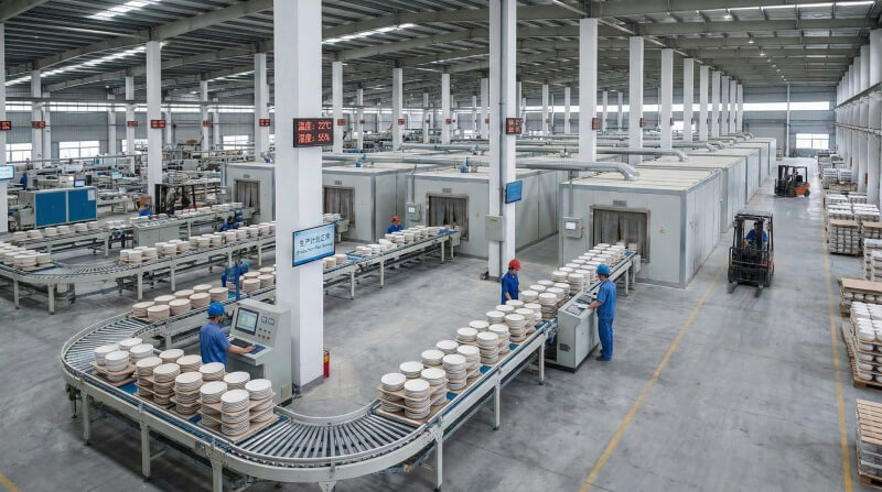 15,000m² production facility with climate-controlled environments. Optimal conditions for consistent ceramic quality and worker productivity. Reliable production schedules that meet your delivery requirements every time.