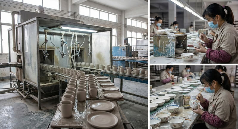 Computer-controlled jiggering machines and pressure casting systems produce uniform wall thickness and precise dimensions across thousands of seasonal pieces, eliminating dimensional variations that cause retail rejection.
