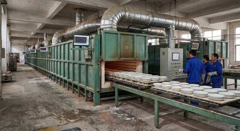 Computer-monitored tunnel kilns maintain precise 1320°C temperatures creating vitrified ceramic bodies and permanently bonded festival decorations, achieving commercial dishwasher durability that prevents customer complaints.